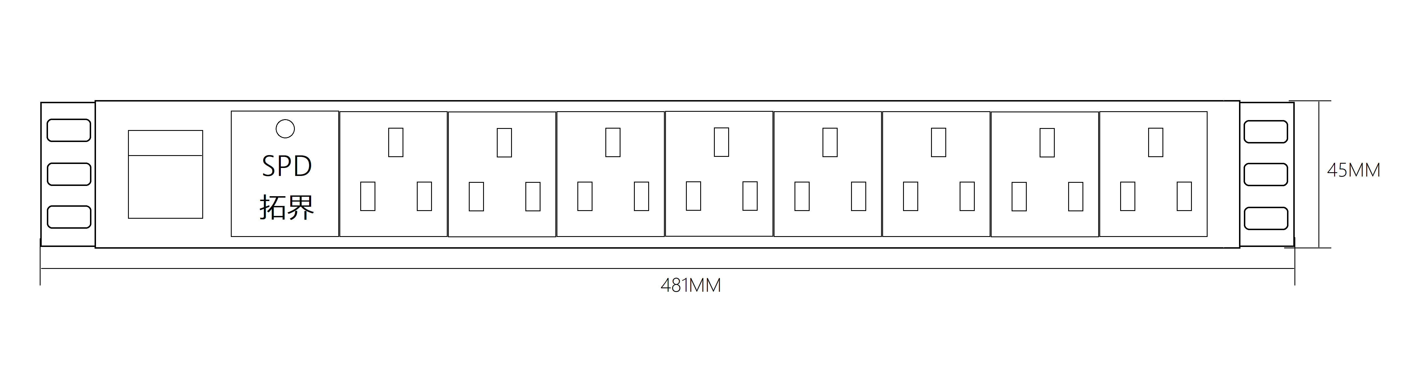 產品參數:額定電流10A,工作電壓220V,1U8位10A新國標,1.5平方電源線2米10A國標插頭,產品系列:新國標系列,插座制式:GB/T1002-2008(10A)新國標標準輸出,輸出單元:8位10A新國標,供電輸入方式:左端輸入,安裝支架方式:水平安裝,電纜線插頭:GB1002(10A)國標插頭,保護監測功能:單燈防雷,外殼顏色:黑色,電纜線規格:3*1.5平方電源線2米(可選3米),產品尺寸規格:長×寬×高= 483×44.5 X44.5 mm,固定孔中心距:460mm,外殼長度:427m m,PDU指數:1U,出廠配件:安裝螺絲包,合格證,說明書,額定電壓:250VAC 50/60Hz,額定電流:10A,最大功率:2500W,安規認證:CCC,模塊面板:PC/ABS防火阻燃,外殼:鋁合金,內部結構:磷銅,電源線:有3C認證國標線。帶獨立等電位接地線、產品特點:高效突波吸收,阻燃抗沖擊,過載保護,多用插孔設計。使用范圍:各種機房機架式電源配套安裝。安裝方便,可直接安裝于各種機柜內,美觀、安全、可靠。標準IU面板,19英寸。